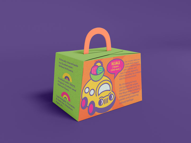 Inspired by Guatemala’s rich heritage, the Ixchoca package design celebrates artisanal craftsmanship through vibrant color, symbolic patterns, and storytelling. Created to delight little girls, it blends traditional motifs with a modern touch, honoring handmade authenticity and sharing the Guatemalan artistry spirit across generations.